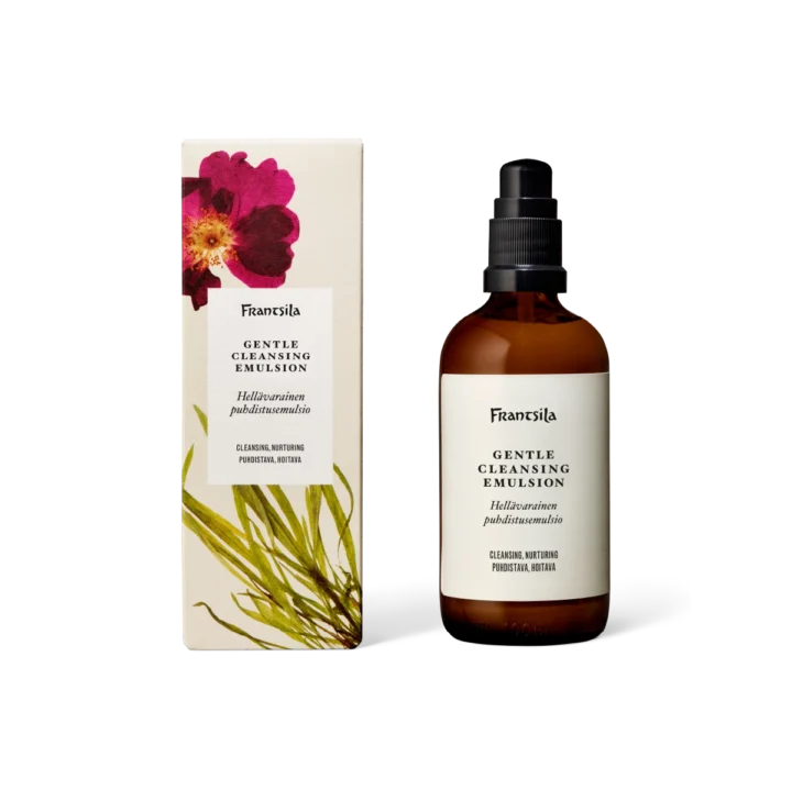Hellävarainen puhdistusemulsio pesee epäpuhtaudet ja meikin jättäen ihon pehmeäksi ja puhdistetuksi.