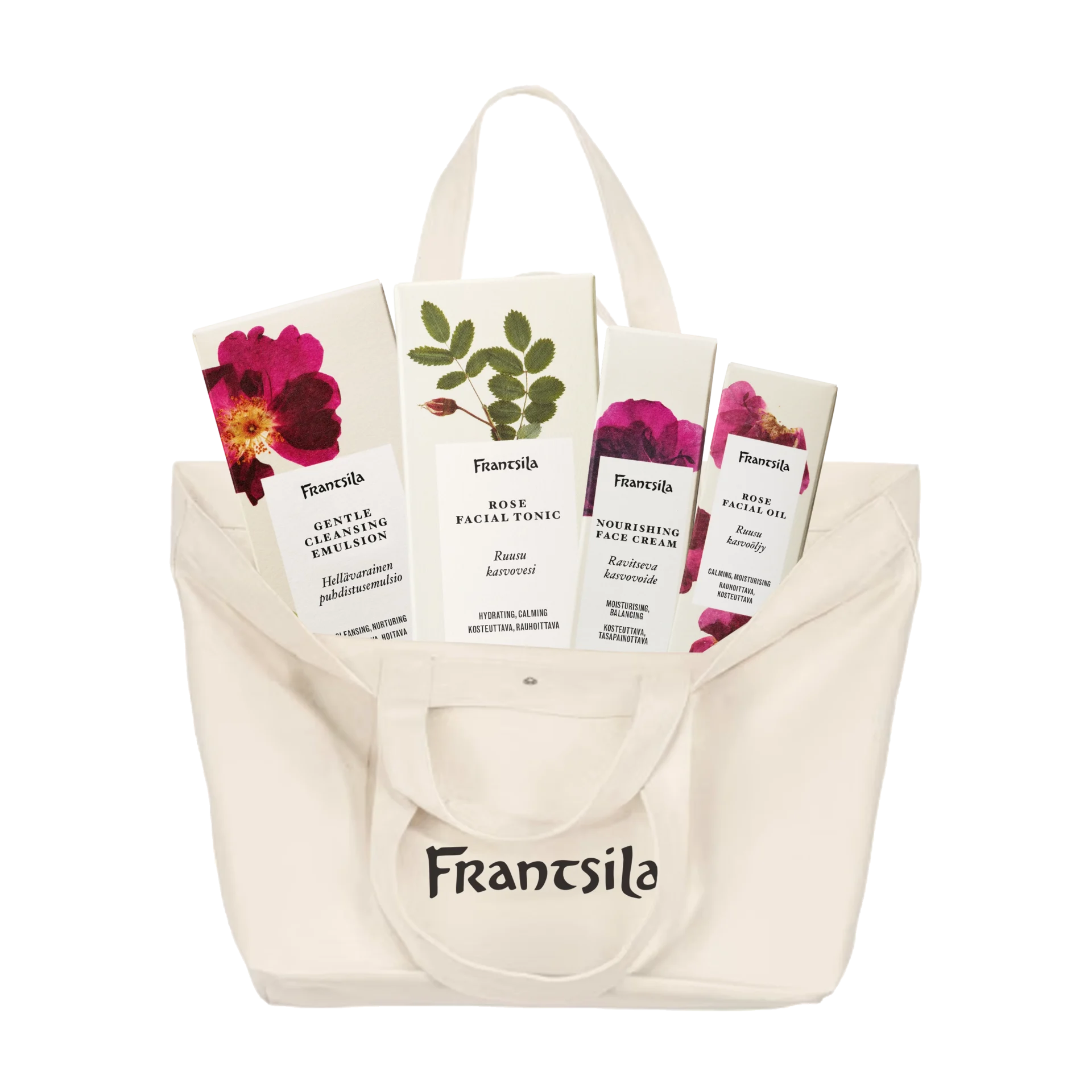 Ruusuinen kasvojen hoitorutiini + kassi