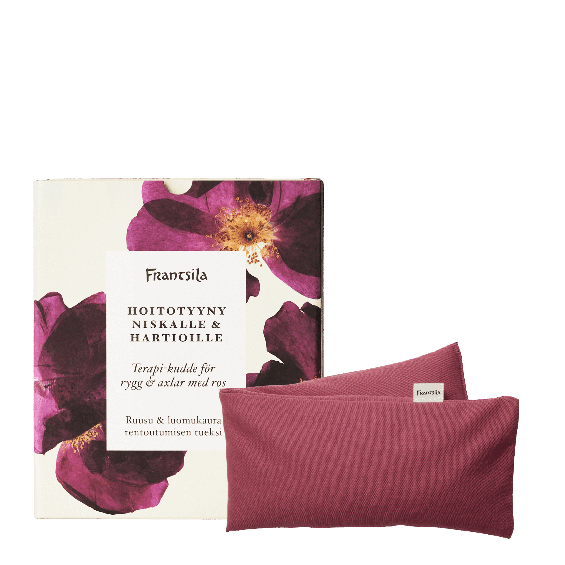 The softly rose-scented oat therapy bag is easy to use and promotes well-being through soothing relaxation. Filled with organic Finnish whole oat grains, known for their exceptional heat-retaining properties, the bag provides lasting comfort.