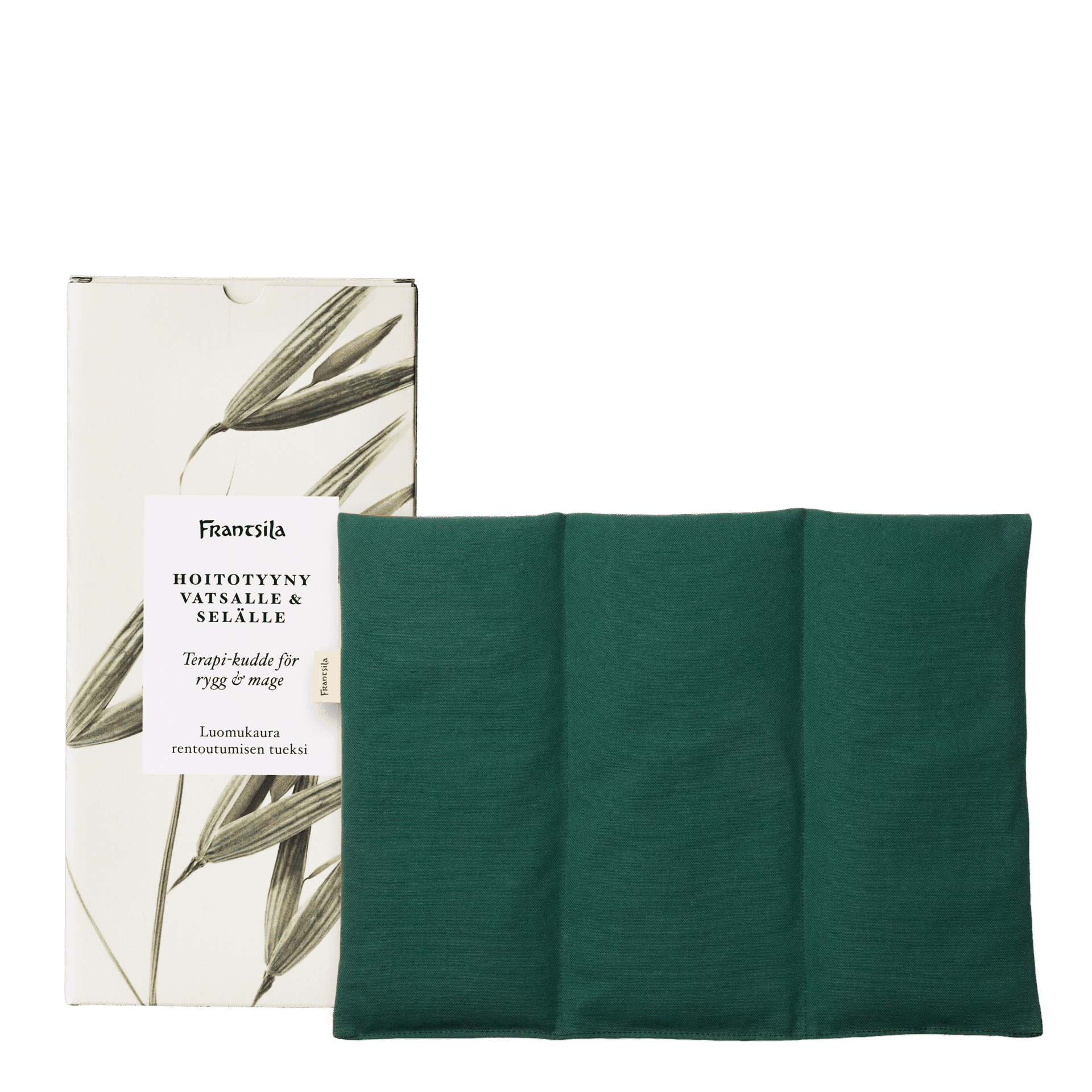 Kotimaista luomukauraa sisältävä hoitotyyny on helppokäyttöinen ja hyvää oloa lisäävä tuki rentoutumiseen. Kauralla on kyky sitoa itseensä lämpöä pitkäksi aikaa, joten voit nauttia sen hoitovoimasta vaikka pitkin työpäivää tai yöunilla. Sopii koko perheen käyttöön.