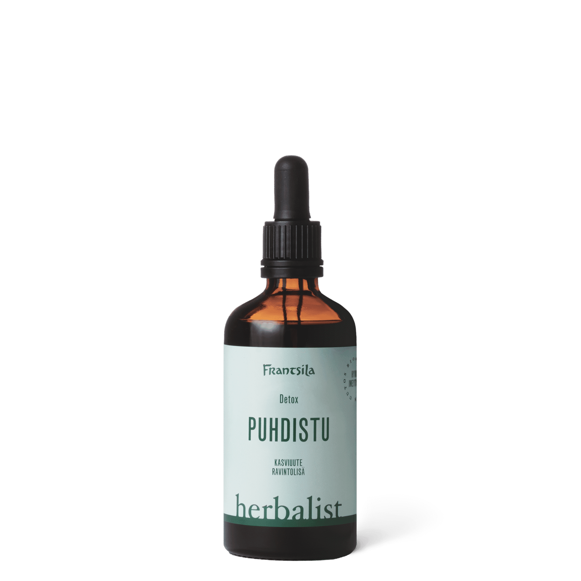 Herättele aineenvaihduntasi käyntiin tai tue vireystilaasi. Puhdistu on detox ja monen kasvin uute, joka on täynnä luonnollisia tehoaineita, tarkkaan yhdisteltynä ja uutettuna. Siankärsämö edistää ruoansulatusta, nokkonen ja takiaisenjuuri auttavat elimistöä puhdistumaan, ja voikukka tukee maksan ja suoliston toimintaa. Kehäkukka edistää kehon itsekorjaantumista, ja nokkonen auttaa myös vireystilaan.